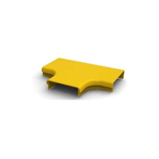 100x100m-es optikai kábelcsatorna rendszerhez csatorna "T" toldó fedő elem RAL 1021-es sárga színben.