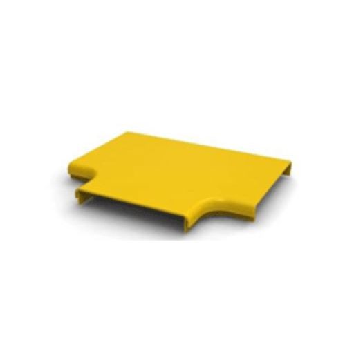 160x100m-es optikai kábelcsatorna rendszerhez csatorna "T" toldó fedő elem RAL 1021-es sárga színben.